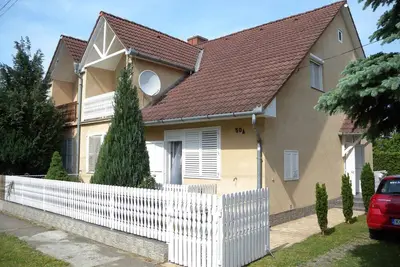 Balatonkeresztúr à 20 km de Keszthely: Maison accueillante "Pomme". Dans la localité, situation ensoleillée, à 400 m du lac. A usage privé: jardin (clôturé), pré. Restaurant 300 m, centre thermal "Hév ... lire la suite