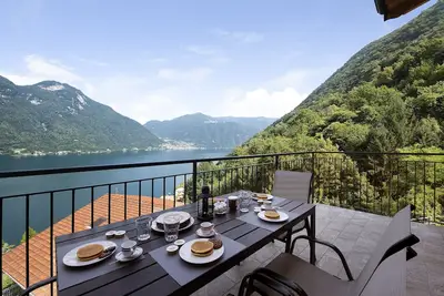 En vacances avec famille et amis. A mi-chemin entre Côme et Bellagio, une vieille maison avec plusieurs chambres, un jardin et une terrasse avec etonnant vue sur le lac, isolé et calme mais pas isolé. ... lire la suite