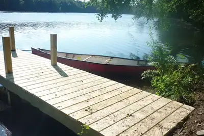 Emplacement parfait pour toutes les activités de Berkshire. Maison au bord de l'eau, toute l'année, avec cheminée, toute meublée et décorée dans un style rétro du milieu du siècle. Pensez 'Walden', p ... lire la suite