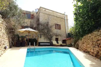 Character farmhouse in gozo with pool on roof terrace and fountain courtyard