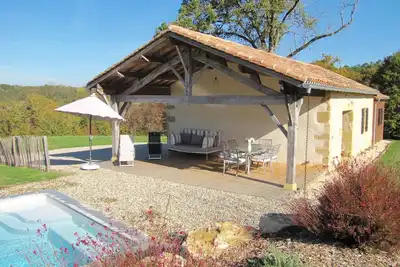 Gite isolé au cœur de la foret en Périgord à 4 k ms de la bastide de Monpazier . maison totalement indépendant calme absolu sur 1 hectare de terrain pour 6 personnes avec piscine 10x4 parking garage ... lire la suite