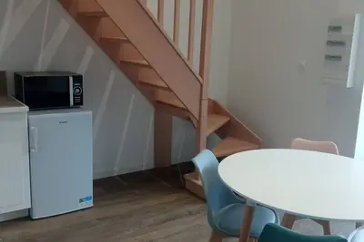 Rez-de-chaussée : cuisine, salle de séjour (canapé convertible 2 pers.), wc. Etage : mezzanine avec 1 lit 140 et 2 lits 90, salle d'eau, wc. Terrasse 18 m², petit jardin semi-clos privatif, cour commu ... lire la suite