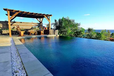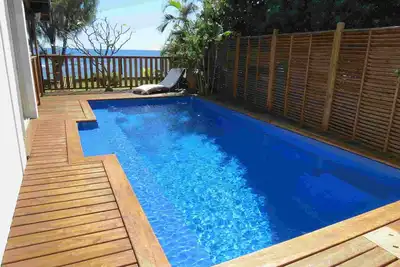 Maison avec piscine à st leu face à l'océan indien, jardin arboré. lacmer.