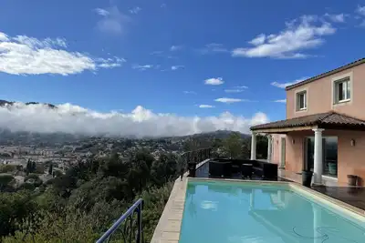 Villa 10 personnes Ă 10 km de cannes avec piscine. vue imprenable jusqu'Ă la mer
