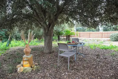 Ils sont Peretó Petit est une maison avec piscine située dans 4000sq m de la terre, avec des arbres de culture (orange, citron, amande, figuiers) et un grand jardin de 3000 m2. Le jardin dispose d'une grande surface d'arbustes, des plantes indigènes et des bancs sentiers de là où vous pourrez profiter de la nature. Au centre du jardin, vous trouverez la piscine de 8x4m, avec douche extérieure et un solarium équipé de chaises longues.