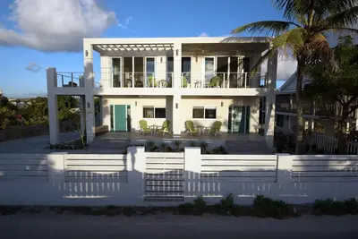 Spacieuse suite à une chambre à aire ouverte avec accès direct au patio et à la piscine.  Les logements sont aménagés avec des œuvres d'art originales de Patty Vineyard, ainsi que des artistes locaux des îles. La suite comprend pratiquement tout pour rendre votre séjour confortable, avec une cuisine équipée de nouveaux appareils en acier inoxydable et une machine à glaçons intégrée pour un nombre illimité de glaces lors des chaudes journées des Caraïbes.