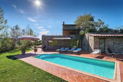 Propriété à usage exclusif Villa en pierre de style classique toscan de 250 mètres carrés avec 4 chambres doubles et 4 salles de bain, capable ainsi d’accueillir 8 personnes. La villa dispose d’un gra ... lire la suite