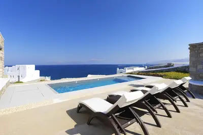 Luxury myconian sunset villa with private pool, 5km to windmills