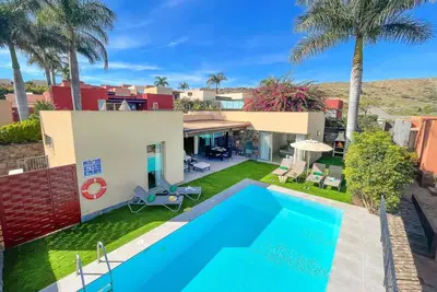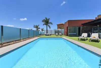Villa moderne, confortable "Joviano". Dans le haut de la station de Maspalomas, au centre d'El Salobre. A usage privé: terrain (clôturé), piscine rectangulaire (7 x 3 m, profondeur 130 - 130 cm, dispo ... lire la suite