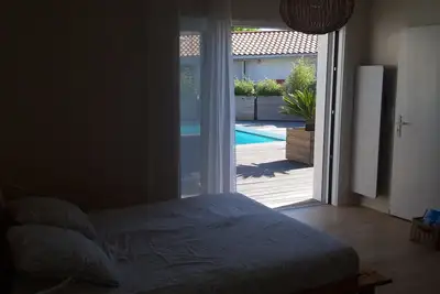 Idéal FAMILLE ou entre AMIS / PISCINE / JARDIN / PLAGE à pied /SALLE DE FITNESS / GOLF À PROXIMITÉ à 15 minutes à pied des magnifiques PLAGES de la chambre d’amour,du golf, des commerces, bars et res ... lire la suite
