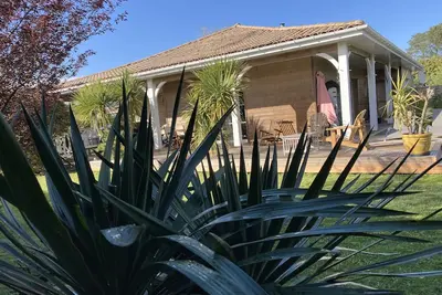 LA VILLA ALOHA . Logement .entierement privee sans vis a vis .. a 5 minures du lac leplus grand de France.et10 minutes des plages .. Villa 130 m2 …TERRASSE couverte Bois.. et externe de 90m2 terr ... lire la suite