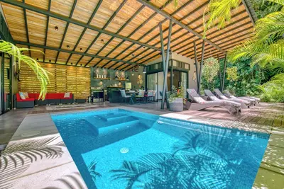 Cette villa avec 3 chambres et 2.5 salles de bain à Tamarindo vous offre une expérience des plus complètes. Les amoureux de la nature et du grand air seront ravis de loger à 10 minutes en voiture de P ... lire la suite