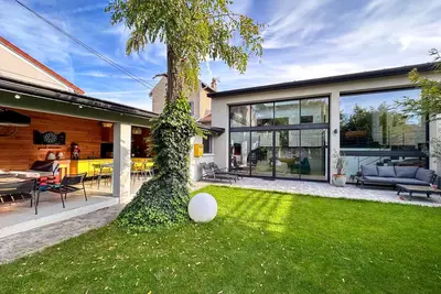 Maison contemporaine lumineuse et plongée dans un jardin arboré et sa piscine chauffée. Près de Paris lors des JO 2024, à 3 kms de la Porte de Saint-Cloud (Roland Garros, Parc des Princes) et à 10 min ... lire la suite