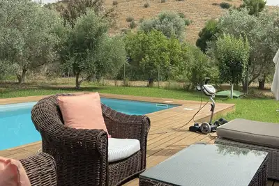 Luxueuse maison à deux étages décorée avec goût pouvant accueillir confortablement une grande famille ou un grand groupe d'amis. Construit entre les oliveraies et les vignobles, à seulement 6 km de Ch ... lire la suite