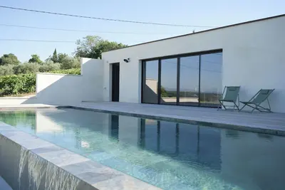 Villa neuve tout confort de 120m2, climatisée avec piscine individuelle et jacuzzi. Elle se situe dans un petit hameau au cœur des chênes. Elle possède 4 chambres (dont une suite parentale accès PMR ... lire la suite
