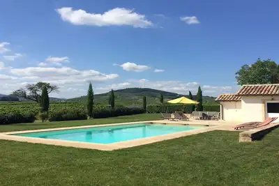 Ardèche sud mazet avec piscine privée, vaste jardin plat