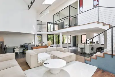 Bienvenue! La porte d’entrée de ce loft de 150m² s’ouvre sur un espace lumineux et élégamment décoré. Il est situé sur deux niveaux et n'est pas adapté aux personnes à mobilité réduite. Le coin sal ... lire la suite