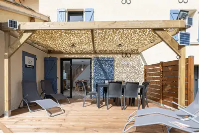 Appartement de 50m2 4 couchages dans villa comprenant 1 chambre (1 lit double) salle de bain cuisine coin repas salon (1 convertible 2 places) et une terrasse Entièrement équipe Équipements de base Se ... lire la suite