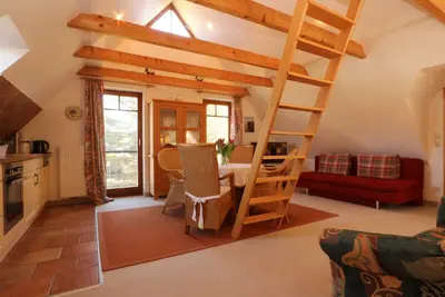 Appartement 1, rez-de-chaussée, 2 chambres, Loddin: • 42 mètres carrés d'espace de vie • salon avec cuisine ouverte • salon avec télévision par satellite et coin salon • cuisine complète avec cuisiniè ... lire la suite