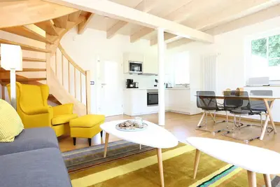 Vous vivez dans la maison allemande, située sur les falaises. L'appartement maisonnette confort Klabautermann est situé au 1er étage et dispose de suffisamment d'espace pour 6 personnes avec 95 m² rép ... lire la suite