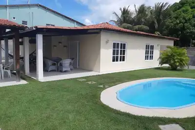 Très belle maison, avec balcon, piscine, barbecue, chuveirão, jardin, à côté de l’une des plages les plus calmes de la côte d’Alago et dans une communauté fermée avec sécurité 24h / 24 4 chambres, 2 ... lire la suite