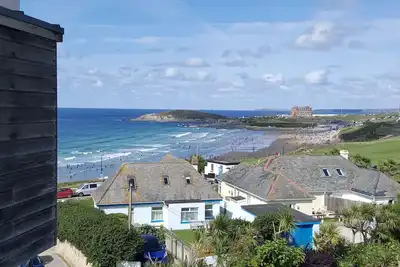Une vue imprenable sur la plage de fistral avec un parking sécurisé pour 2 véhicules