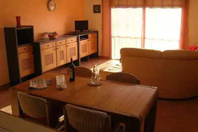 Agréable appartement de 120 m2 , pouvant accueillir jusqu'à 8 personnes (maximum). Terrasse avec vue sur mer et sur parc de la résidence. Cuisine américaine équipée, salon, salle à manger, 4 chambres ... lire la suite