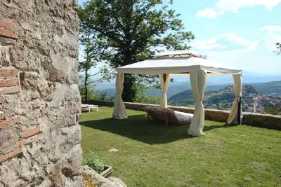 Ferme en pierre avec grand jardin équipé d'où vous pourrez admirer un magnifique panorama sur la Maremme toscane. La maison est une maison isolée et est située sur la colline au-dessus du village médi ... lire la suite