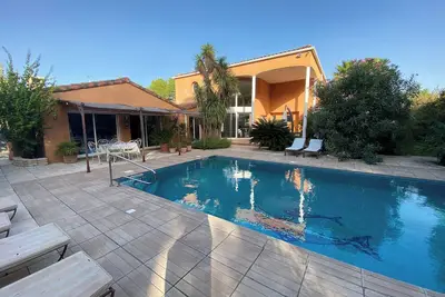 Villa 12 personnes de 200 m² de standing au style californien, située en Provence, à proximité immédiate de toutes les commodités. Idéalement placée à seulement 15 minutes 🚗 de l’aéroport ✈️, de la ga ... lire la suite