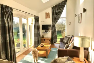 La grange à foin - une chambre lit king size avec salle de bains privative et une chambre avec lit king-size / lits jumeaux, cuisine / salle à manger et salon avec portes françaises donnant sur la ter ... lire la suite