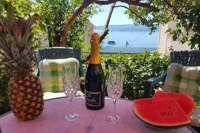 Profitez de vacances agréables et relaxantes dans notre villa Na More. Cet appartement avec une immense terrasse couverte offre une vue sur la mer jusqu'à l'île opposée de Brac. Une chambre et un gran ... lire la suite