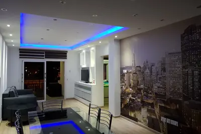 Appartement design à 10 min en voiture du centre et de la plage de Phinikoudes. Le quartier est calme, avec des pharmacies, une boulangerie et un kiosque juste à côté et un grand supermarché à 5 minutes. Appartement spacieux de 2 chambres près du centre de Larnaca. L'appartement dispose d'une connexion Wi-Fi gratuite, d'une télévision et d'un parking privé couvert gratuit. Toutes les chambres sont entièrement climatisées, des serviettes propres et du linge de maison sont fournis. L'appartement a été récemment entièrement rénové et dispose d'une nouvelle cuisine moderne entièrement équipée avec un bar à petit-déjeuner, d'une spacieuse salle à manger décloisonnée et d'un coin salon ouvrant sur un balcon avant qui est doté de nouveaux meubles modernes et confortables. Il y a un coffre-fort pour les objets de valeur.