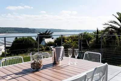 Bénéficiant d'une superbe vue sur mer, cette villa d’architecte de 190 mètres carrés, pour 8 personnes, est située dans la baie de St Michel en Grève, à moins de 20 minutes de la côte de granit rose et de toutes les commodités.