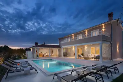 La Villa Simona Residence se trouve à proximité de Rovinj et constitue un excellent choix pour des vacances reposantes. La villa moderne avec piscine offre quatre chambres à coucher pour huit hôtes.