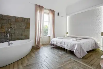 La Matrimoniale Deluxe è dotata di letto King size e vasca all interno della stanza e un bagno extralage per un confort estremo con annesso balcone e tv streaming con amazon prime video e disney+ e bagno privato .La camera tripla Atlante è dotata di ampi spazi con letto king size e letto singolo e balcone e bagno privato. la camera SOPPALCATA con tetto alto 1,90 cm Apollo è dotata di divano letto e letto matrimoniale standard con la possibilità di isolare gli ambienti con porta a scrigno che divide la camera matrimoniale dai letti singoli e tv smart con amazon prime video e disney+ e bagno privato. L Appartamento ha un area comune elegante per momenti di lavoro o di relax dotata di cucina con piano cottura , bollitore, microonde, macchina del caffè con cialde e frigorifero.