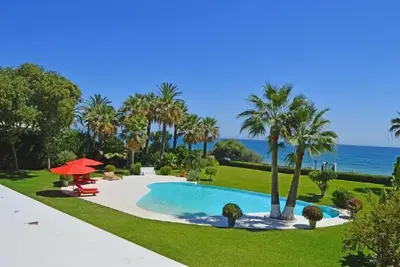Impressionnante villa à Marbella située en bord de mer, avec accès direct à la plage. À seulement 10 minutes de Puerto Banus. La Villa se compose de 9 chambres et 9 salles de bain et peut accueillir j ... lire la suite