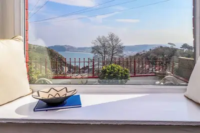 High view cottage, pet friendly, with open fire in penrhyn bay