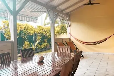 Bienvenue chez nous! Grande maison à 700 mètres de la mer et du centre de la commune, dans un quartier très calme,avec vue sur la campagne et sur les mornes(colline en créole).Grande terrasse de 40M ... lire la suite