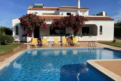 Villa de 4 chambres avec 4 salles de bain privées et piscine privée. 500m à pied de la plage de Praia da Coelha, 1. 4 km de Paia Do Sao Rafael et à seulement 5 km / 8 minutes en voiture du centre d'Al ... lire la suite