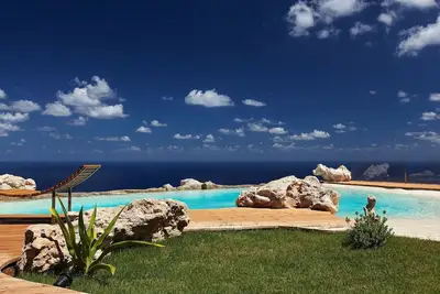 Nouvelle structure avec 3 dammusi, piscine à débordement et vue mer imprenable