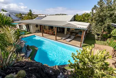 Maison contemporaine au cœur d'un jardin verdoyant avec grande piscine privée. Vue sur l'océan et la montagne. Située dans un quartier calme à 5 min du centre de Saint Benoît et de Bras Panon. Parking ... lire la suite