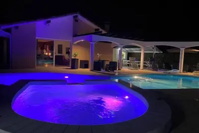 Maison chaleureuse, grand standing de 200 m2, proche de Dax et de la côte Atlantique. Venez profiter de notre grand jardin avec piscine extérieure chauffée et jacuzzi, sans vis à vis et une superbe cu ... lire la suite