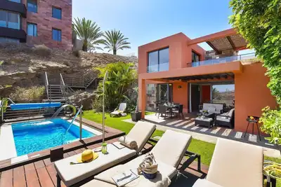 Villa moderne, confortable "Par4 Villa 10". Dans le haut de la station de Salobre Golf Resort, en bordure de la localité Maspalomas 5 km en-dehors de la localité Meloneras 7 km, situation tranquille, ... lire la suite