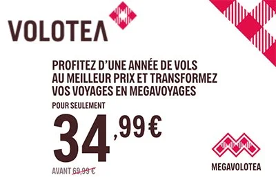 Pendant 48 heures, jusqu'au 7 mai minuit, Volotea propose une vente flash sur ses abonnements MegaVolotea à 50% : 34,99€ au lieu de 69,99€ pour 1 an.